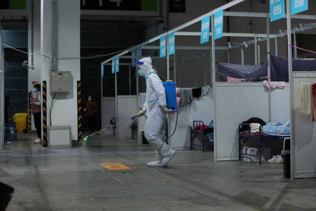 △15点左右,一位大白正在给方舱进行消杀作业。